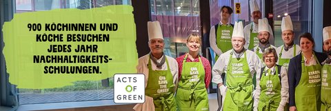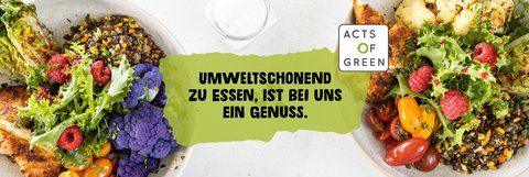 Nachhaltigkeit heisst bei uns Acts of Green. Acts of Green ist unser Nachhaltigkeitskonzept. Nachhaltigkeit steht bei all unseren Entscheidungen im Mittelpunkt. Wir achten auf die Saison und vermeiden damit weite, oft sinnlose Transporte aus fernen Ländern, sparen Energie und schonen die Umwelt. Nachhaltigkeit heisst auch, echte Schweizer Lebensmittel mit Qualitätsgarantie zu konsumieren. Wir betreiben fairen Handel und nennen die Produkte und Lieferanten beim Namen.