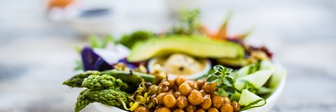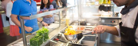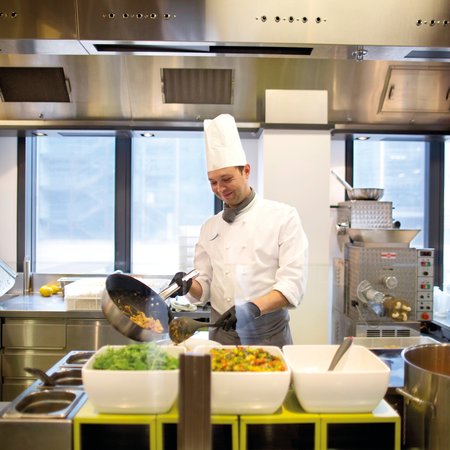 An unserem «Green Market»-Buffet können die Gäste sich eine fettarme und dennoch ausgewogene Mahlzeit selbst zusammenstellen. Ein ausgewogenes Salatbuffet besteht aus einer Vielzahl an frischen Blattsalaten sowie auch Gemüse-, Bohnen-, Linsen-, Getreide-, Nudeln-, Reis-, Tofu-, Fleisch- und Fisch-Salaten. Das i-Tüpfelchen ist eine grosse Auswahl verschiedener Nüsse, Kerne, Samen, Öle und Essige.