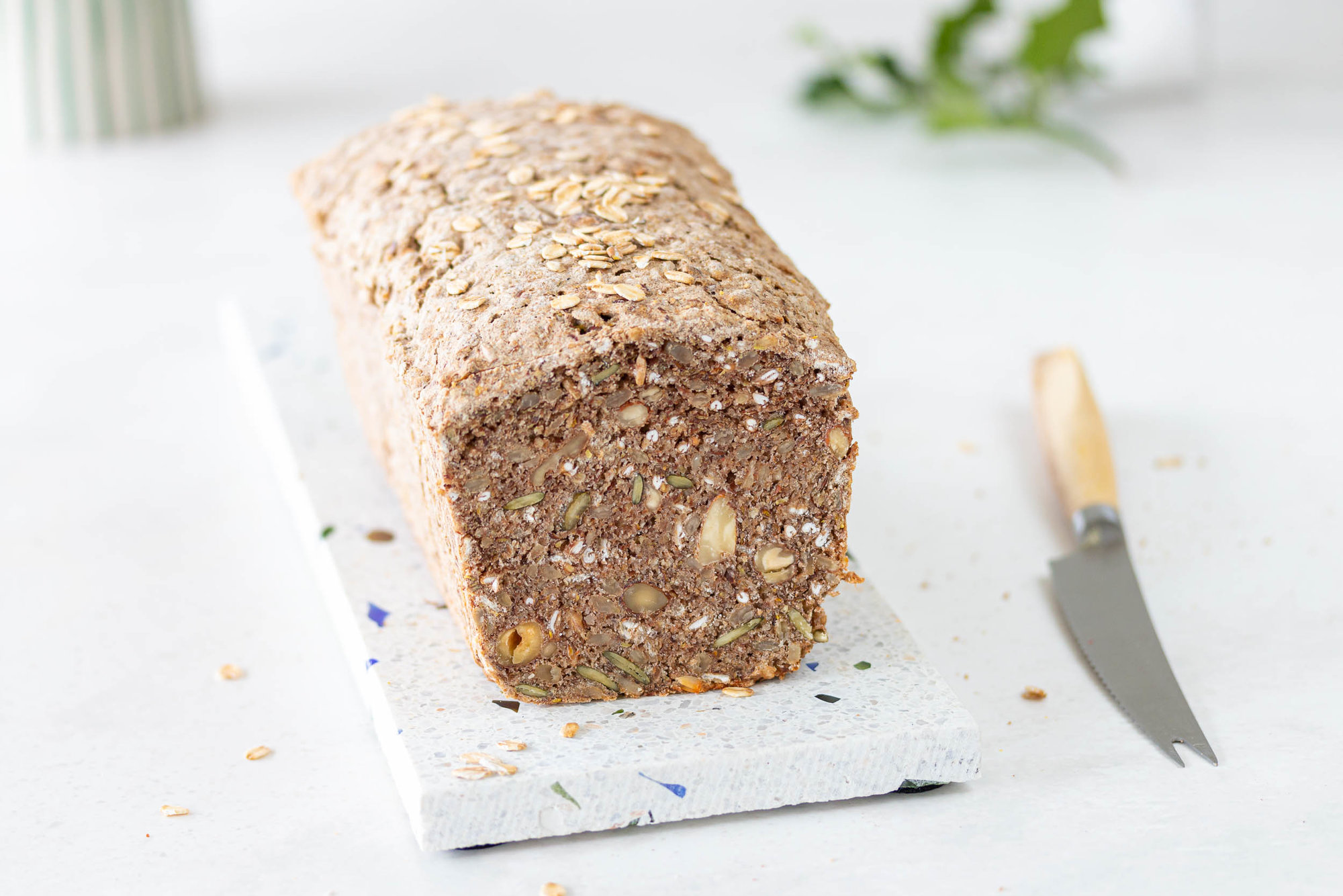 Den Roggen für 30 Minuten in kaltes Wasser legen. Alle Zutaten in eine Schüssel geben und von Hand oder mit der Küchenmaschine kneten, dann für ca. 1 Stunde bei Zimmertemperatur ruhen lassen. Der Teig ist etwas feuchter als gewöhnliche Brotteige. Den Teig in eine Backform geben und gut in die Form reindrücken. Nochmals für 30 Minuten ruhen lassen und im Ofen bei 180 Grad für 50 – 60 Minuten backen. Das Brot kann gut in Stücke geschnitten und eingefroren werden.