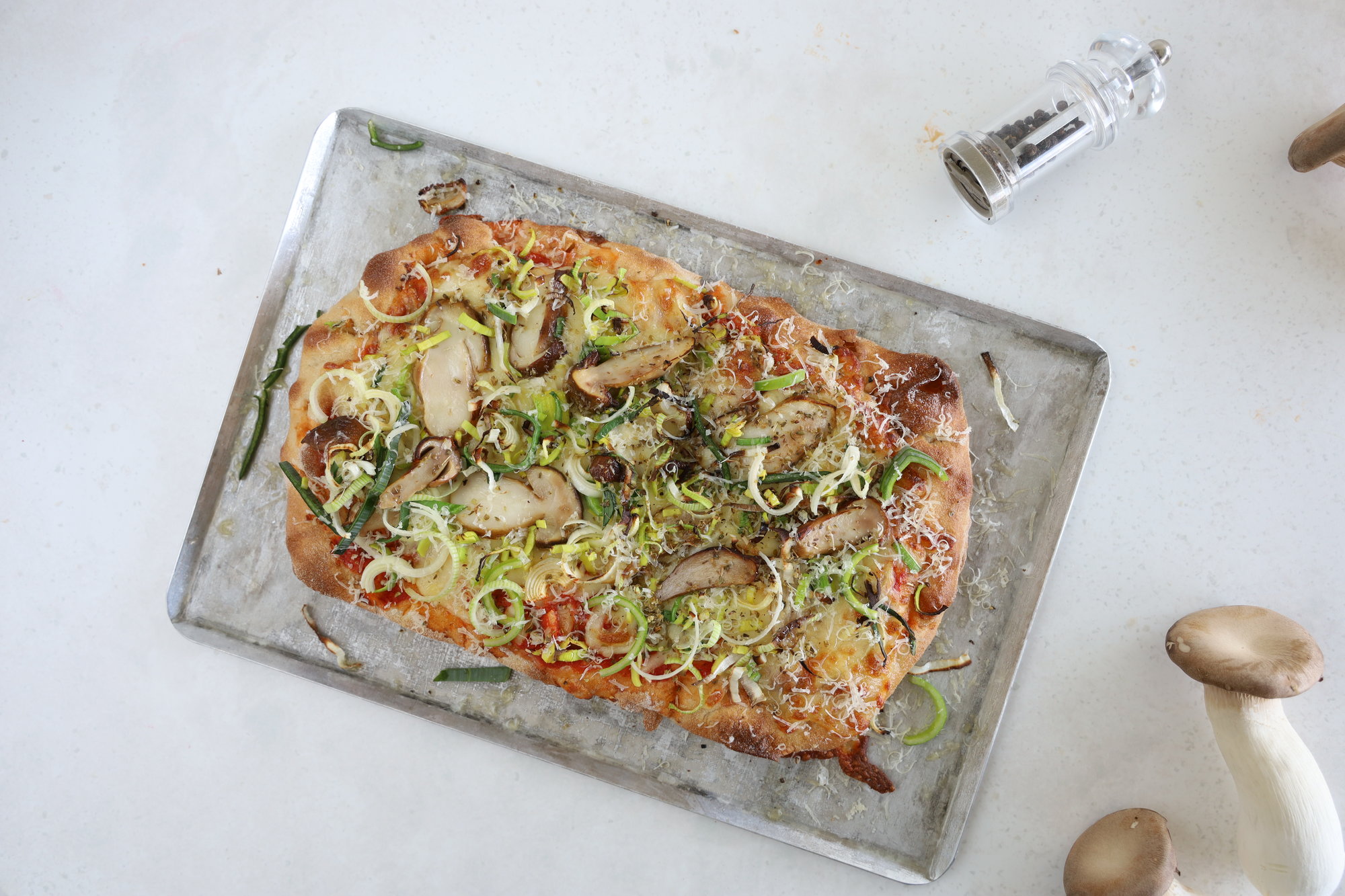 Ofen auf 240 Grad vorheizen. Anschliessend den Pinsa Romana Teig rechteckig ausrollen und auf ein mit Backpapier belegtes Backblech legen. Mit Olivenöl beträufeln und mit Salz & Pfeffer würzen. Die Pinsa backen bis sie leicht gebräunt und knusprig ist. In der Zwischenzeit den Mozzarella, die Steinpilze, den Lauch und den Alpkäse klein schneiden. Sobald die Pinsa Romana fertig gebacken ist, aus dem Ofen nehmen und mit dem Tomaten-Sugo, sowie den weiteren Zutaten belegen. Mit Oregano bestreuen und wieder in den Ofen schieben. Weitere 5 Minuten backen bis der Käse geschmolzen ist. In Scheiben schneiden und frisch geniessen.