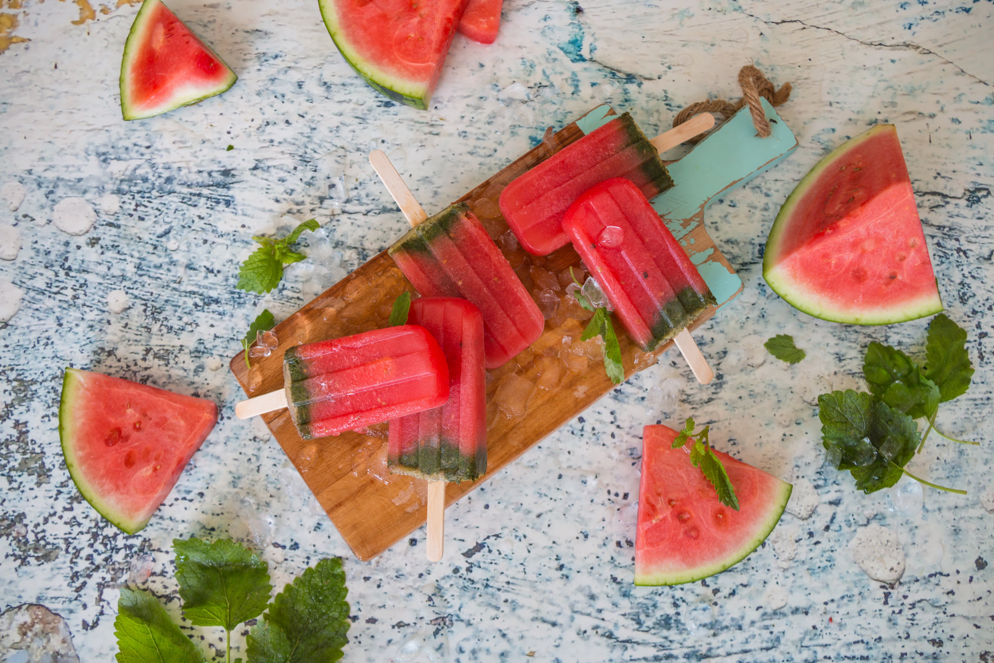 Wassermelone in kleine Stücke schneiden, mit dem Wasser und Zucker in den Mixer geben. Den Melonen-Wasser-Mix in die Formen füllen. Die Zitronenmelisse im Mörser ganz fein zermahlen, zusammen mit dem Zitronensaft, Zucker und Wasser verrühren und ebenfalls in die Formen füllen. Mind. 24 Stunden gefrieren lassen.